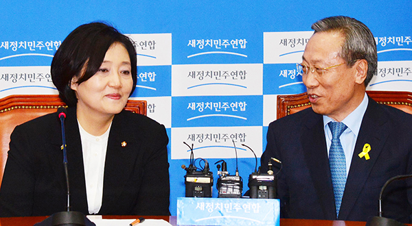 ▲ 박준우 청와대 정무수석이 지난 9일 오후 서울 여의도 국회 새정치민주연합 원내대표실을 방문해 신임 박영선 원내대표와 이야기를 나누고 있다. (뉴시스) |