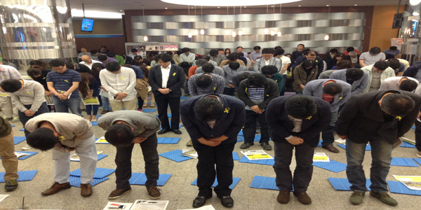 | ▲ KBS 기자들이 14일 세월호 보도 등 공영방송으로서 제 역할을 못한데 대해 대국민 사과하고 있다. | ||