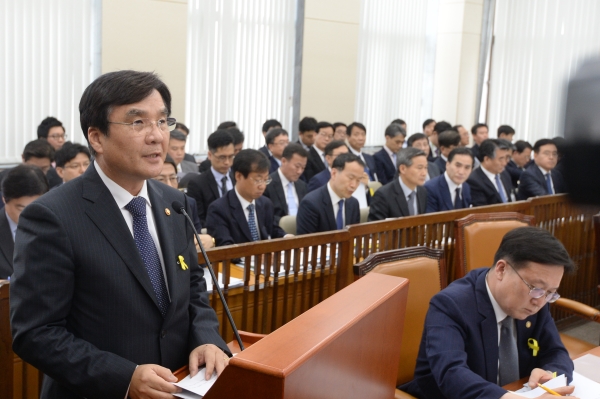 ▲ 14일 오전 세월호 참사 현안보고가 열린 서울 여의도 국회 안전행정위원회 회의실에서 강병규 안전행정부장관이 현안보고를 하고 있다.(뉴시스) |