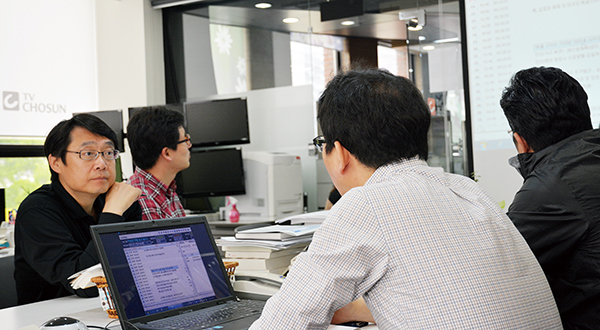 “삐이익~”. 오전 11시, TV조선 주말뉴스 회의를 알리는 벨소리. 평일엔 오전 두 차례(오전 8시40분과 10시30분) 울리지만 토·일요일엔 한 차례만 울린다. 그렇다고 긴장감이 떨어지는 것은 아니다. 30분 동안 열띤 토론을 거치며 이날 메인 뉴스의 밑그림을 잡았다.