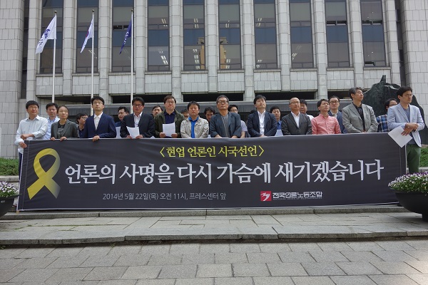 | ▲ 22일 서울 중구 프레스센터 앞에서 현업 언론인들이 시국선언을 하고 있다. | ||
