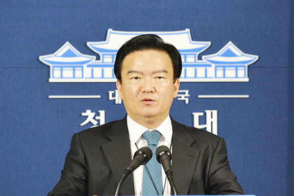 ▲ 지난달 28일 오전 청와대 춘추관에서 브리핑 중인 민경욱 대변인. (뉴시스) |