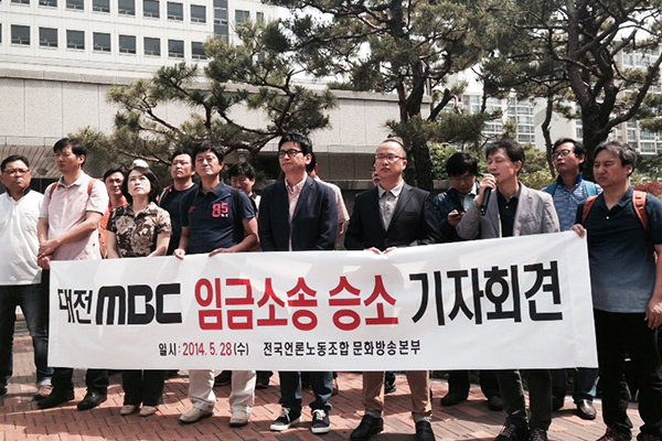 ▲ 전국언론노조 MBC본부가 지난달 28일 대전지방법원 앞에서 대전MBC 임금소송 승소 기자회견을 열었다. (사진=전국언론노조) |