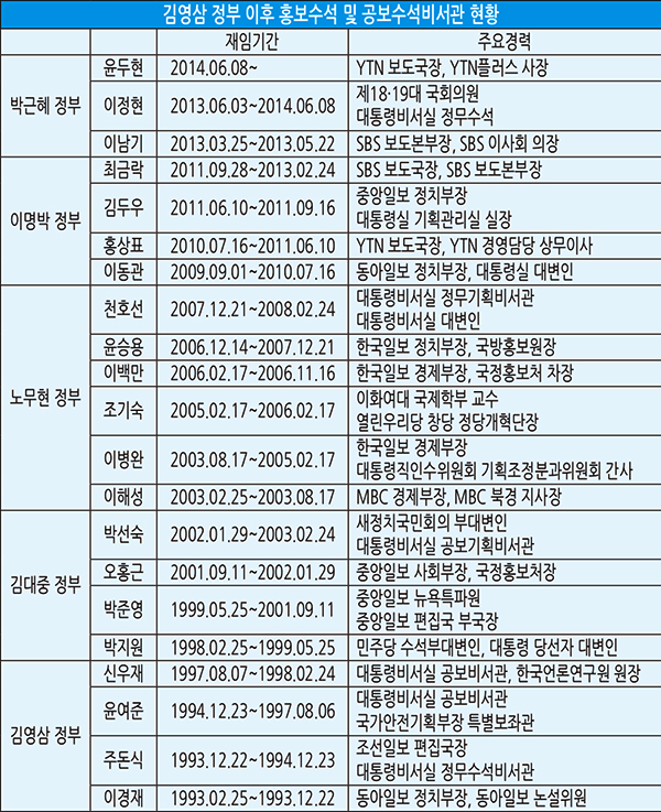 과거 언론인 출신 홍보수석들이 ‘권력 품’으로 들어가 정부와 국민을 잇는 가교 역할을 제대로 했는지도 논란거리다.