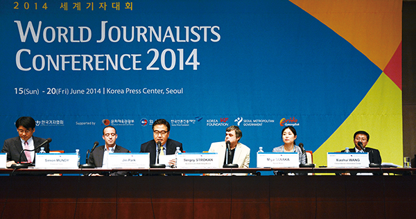▲ 개막 첫날인 16일 서울 중구 한국프레스센터 20층 국제회의장에서 열린 세계기자대회 첫 번째 콘퍼런스에서 북한을 제외한 6자회담 당사국 기자들이 ‘한반도 평화통일 기반 구축과 남북관계 개선’을 주제로 열띤 토론을 벌였다. |