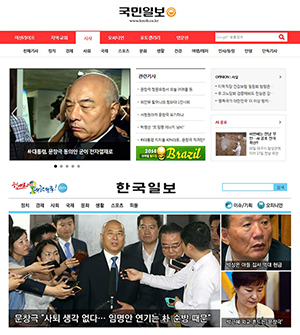 ▲ 낚시성 기사와 선정적 광고를 배제하고 양질의 콘텐츠로 승부를 보겠다는 기치를 내건 국민일보 홈페이지(위)와 한국일보닷컴(아래). |