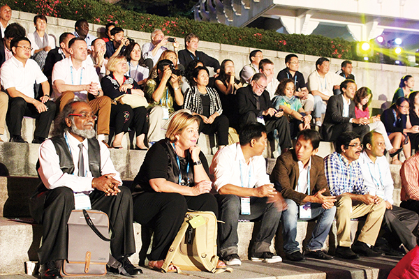 특히 세계 기자들은 18일 저녁 경주시 코모도호텔에 위치한 보문야외공연장에서 전통음악을 듣고 부채춤, 사물놀이 등을 관람했다. 한복을 차려 입은 공연자들과 사진을 촬영하고, ‘얼씨구’ ‘좋다’ ‘잘한다’ 등의 추임새를 따라하며 흥겨워했다.