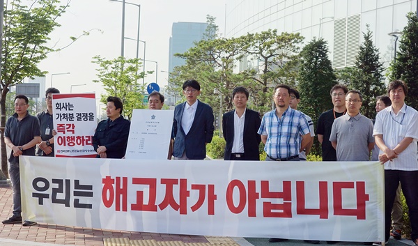 앞서 서울남부지법은 지난달 27일 정영하 전 위원장과 강지웅 전 사무처장, 이용마 전 홍보국장, 박성제 기자, 박성호 기자, 이상호 기자 등 MBC 해직자 6명에 대한 근로자지위 보전 가처분 신청에 대해 사측에 이들의 근로자 지위를 인정하고 해고 이후 받지 못한 임금을 지급하라고 결정했다. 다만 노사간 법적 다툼을 벌이고 있어 해고무효소송 항소심 선고 전까지로 한정했다. 지난 1월 법원은 해고무효소송 1심에서 2012년 공정방송을 요구하며 170일간 벌인 전국언론노조 MBC본부의 파업의 정당성을 인정하며 해고가 무효라고 판결했다.