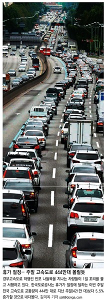 전국이 본격적인 피서철을 맞았다. 동아일보, 세계일보는 각각 꽉 막힌 고속도로와 휴가객들로 붐비고 있는 인천국제공항 출국장을 1면 사진으로 내걸었다. 동아일보는 “한국도로공사는 휴가가 절정에 달하는 이번 주말 전국 고속도로 교통량이 44만 대로 지난 주말(421만 대)보다 5.5% 증가할 것으로 내다봤다”고 전했다.