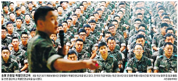 중앙일보는 “28사단 ‘윤 일병 구타 사망사건’을 계기로 육·해·공군 모든 부대가 8일 훈련 등을 중단하고 특별인권교육을 실시했다”면서 장병들이 부대 내 강당에서 법무참모 김규화 대위로부터 교육을 받는 모습을 1면 사진으로 보도했다. 중앙일보는 “전체 교육이 끝난 뒤에는 중대·소대별 토론이 이어졌다”고 전했다.