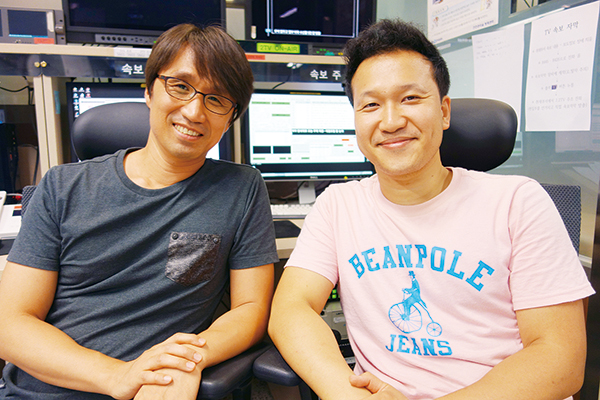 ▲ KBS 보도그래픽부 홍윤철 팀장(왼쪽)과 김현석 디자이너. KBS 1ㆍ2TV 뉴스와 각종 시사프로그램의 그래픽이 이들 손에서 탄생한다. |