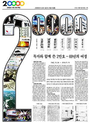 강원일보는 1982년 2월12일 지령 1만호를 기록했다. 이어 1998년 5월22일 지령 1만5000호 이후 16년 만에 지령 2만호를 맞게 됐다.