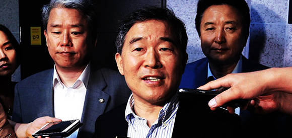 중앙일보는 ‘동력 잃은 장외투쟁’이라는 톱기사 제목 아래 새정치민주연합의 장외투쟁에 반대하는 당내 중도파 의원들이 국회 박주선 의원실에서 기자들의 질문에 답변하고 있는 사진을 실었다.