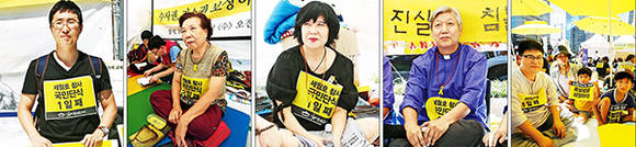 한겨레는 1면 사진에 광화문광장에서 단식 중인 시민 이창수씨, 오순덕 할머니, 소설가 명지현씨, 방인성 목사, 만화가 김병수씨 가족을 실었다. 한겨레는 “지난달 14일부터 곡기를 끊었던 ‘유민 아빠’ 김영오씨가 46일간의 단식을 접은 28일에도 시민들은 서울 광화문광장 단식농성장을 지켰다”고 보도했다.