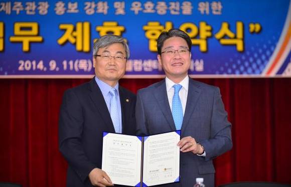 한국기자협회와 제주관광공사(사장 최갑열)는 11일 제주시 연동 제주웰컴센터에서 업무 협약식을 갖고 제주 관광 홍보와 상호 우호증진에 합의했다.