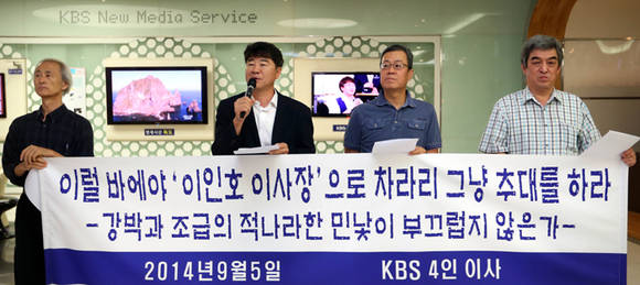KBS 이사회 김주언·이규환·조준상·최영묵 이사 등 야당 이사 4인은 12일 보도자료를 내어 “이인호 이사를 둘러싼 논란에 대해 본인의 태도와 의견을 묻는 공개질의서를 오늘 이사회에 공문 형태로 전달했다”고 밝혔다.