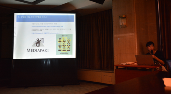 한편 두 번째 세션의 발제자인 진민정 저널리즘학연구소 연구위원은 한국과 미국, 유럽의 대표적 비영리 언론사를 비교해 발표했다. 진 위원은 한국의 구로타임즈·당진시대·옥천신문·해남신문·홍성신문과 미국의 캘리포니아 와치·텍사스트리뷴·민포스트·케넥티컥미러·산디에고의 소리 등을 대상으로 각 언론사의 설립배경, 운영방식, 편집권 독립, 콘텐츠 전략 등을 분석해 눈길을 끌었다. 이어 프랑스 비영리 언론사 메디아파르트(Mediapart), 네덜란드의 드 코러스폰던트(De Correspondent)를 소개했다.
