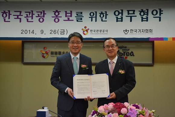 한국기자협회(회장 박종률)와 한국관광공사(사장 변추석)가 26일 한국관광 홍보 강화를 위한 업무협약(MOU)을 체결했다.