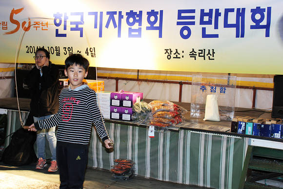 산행을 마친 오후 6시에는 레크리에이션과 경품추첨이 진행됐다. 기자 가족들은 줄넘기, 눈치게임, 제기차기 등 다양한 게임을 즐겼고 결과에 따라 참치 세트와 체중계, 포도즙 등을 선물로 받았다. 이어진 경품추첨에서는 디지털카메라, 한우 세트, 제주도 2박3일 호텔 숙박권 등이 제공됐다.
