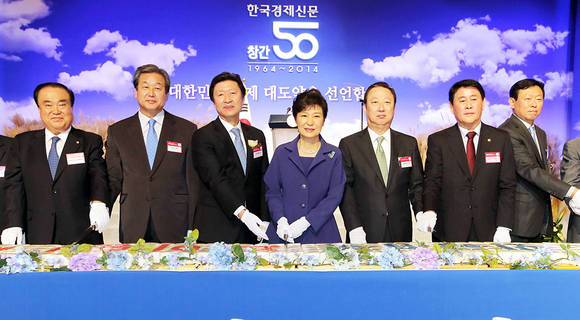 박근혜 대통령을 비롯해 기념식에 초대된 각계 인사 1400여명은 이 자리에서 ‘대한민국 경제 대도약을 위한 선언문’을 채택하고 대한민국 경제의 구조 혁신을 선언했다.