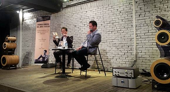 박성제 MBC 해직기자가 펴낸 ‘어쩌다 보니, 그러다 보니’ 책 출간기념 청음회가 10일 서울 대학로 벙커1에서 열렸다. 최일구 전 MBC 앵커의 사회로 진행된 이날 북 콘서트는 해직부터 스피커 장인이 되기까지 박 기자의 솔직한 이야기와 쿠르베 스피커의 청아한 소리가 어우러져 가을밤을 장식했다.