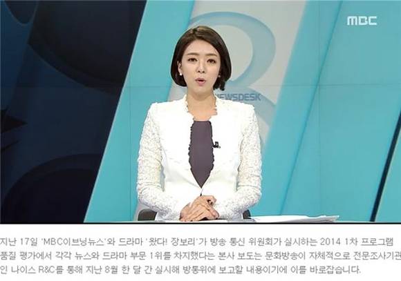 MBC는 지난 17일 뉴스데스크와 뉴스투데이를 통해 ‘MBC 이브닝 뉴스’와 드라마 ‘왔다! 장보리’가 방송통신위원회가 실시하는 2014 1차 프로그램 품질 평가에서 각각 뉴스와 드라마 부문 1위를 차지했다고 보도했다. 하지만 3일 뒤인 20일 뉴스데스크는 이를 바로잡는다며 정정보도했다. MBC뉴스데스크는 “해당 보도는 MBC가 자체적으로 전문조사기관인 나이스 R&C를 통해 지난 8월 한 달간 실시해 방통위에 보고한 내용”이라고 정정했다.