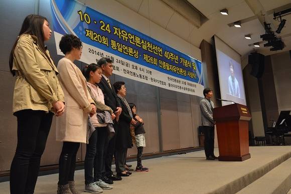 1975년 인혁당 사건을 해외언론에 알려 한국에서 강제 추방된 제임스 시노트 신부는 “40년 전 오늘을 역사적 날, 참으로 빛나는 표본의 날로 기억하고 있다”면서 “당시 한국 사회는 결단을 요구했던 그런 사회였다. 위험한 선택이 될 것을 알면서도 결단했던 숱한 남녀 기자들을 존경하고 사랑하며 마음으로부터 감사의 인사를 드린다”고 전했다.