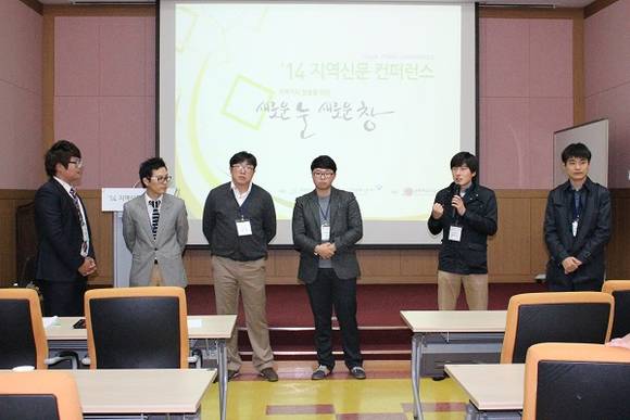 31일 대전 서구 괴정동 kt인재개발원에서 열린 ‘2014 지역신문 컨퍼런스’의 기획세션 ‘젊은 기자의 창’에서 조성겸 충남대 언론정보학과 교수는 지역 언론의 발전 방안을 젊은 기자들에게서 찾을 수 있다고 말했다. 젊은 기자들은 위기를 타개하기 위해 각 사별로 추진하고 있는 사례들을 공유하며 지역 언론이 이 방법들로 한층 성장할 수 있다고 주장했다.