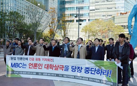 전동건 방송기자연합회장은 “우리를 대신해 국민의 알 권리와 표현의 자유를 위해 진실을 파헤치며 누구보다 열심히 일한 언론인들이 쫓겨났다”며 “이는 MBC 경영진 수뇌부가 국민들을 상대로 전쟁을 하겠다는 것이나 마찬가지다. 직업윤리에 충실한 기자, PD들이 다시 현장으로 돌아와 MBC가 일어설 수 있도록 해야 한다”고 밝혔다.