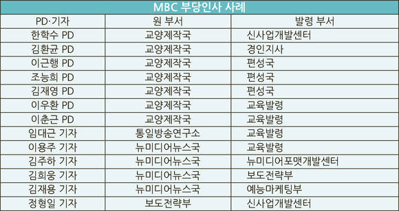 MBC의 이번 인사는 2012년 파업 직후와 닮아 있다. 상식 밖의 인사로 기자와 PD들을 ‘교육’과 ‘사업’부서로 몰아냈다는 점이다. 2년여 전 ‘신천교육대’에 격리됐던 기자, PD들은 또다시 교육을 받고 있고, 경인지사와 보도전략부 등 보도국 밖을 전전하던 이들은 본 업무로 돌아가지 못한 채 여전히 주변부를 맴돌고 있다.