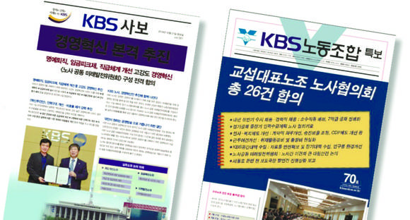 KBS는 국정감사를 하루 앞둔 지난달 21일 사보와 보도자료를 동시에 내어 명예퇴직과 임금피크제 실시, 직급체계 개선, 안식휴가 폐지 등을 포함한 고강도 경영혁신을 추진한다고 밝혔다. KBS는 “당면한 경영위기를 타개하기 위해 노사가 손을 마주 잡고 ‘노사 공동 미래발전위원회’를 구성하기로 전격 합의했다”고 설명했다. 이날 사보 1면에는 조대현 사장과 교섭대표노조인 KBS노동조합(1노조) 백용규 위원장이 합의문을 든 채 웃고 있는 사진이 실렸다.