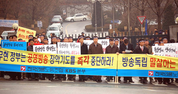 EBS노조도 “한마디로 대통령이 추천한 인사가 모여 방송사 사장 후보를 뽑고, 그 후보를 대통령이 임명하겠다는 것”이라며 “국민을 위한 방송이든, 언론의 자율성이든 상관 없이 돈 안 되면 공영방송사도 한순간에 없애버리게겠다는 무섭고도 위험한 도발”이라고 19일 주장했다.
