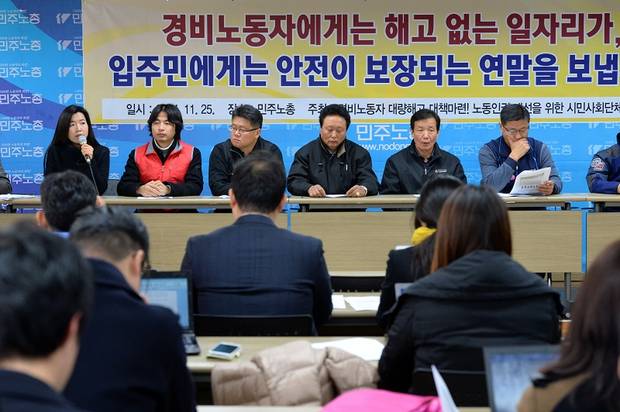 경비노동자들이 느끼는 위기감은 특정 아파트만의 사례가 아니다. 내년부터 아파트 경비노동자들에게 최저임금 100%를 적용을 앞두고 서울 지역 일부 아파트 대단지에서는 경비노동자 해고 사태가 잇따르고 있다. 고용은 유지하되 무급휴게 시간을 늘려 월급을 삭감하는 경우도 있다. 하지만 최저임금 100%를 적용한다 해도 관리비가 크게 늘어나진 않을 것이란 주장도 나온다. 김선기 국장은 “계산을 간단히 해봐도 아주 큰 금액이라 봤자 9천 원 정도, 또 서민 아파트는 1~3천 원 정도”라며 “그래서 ‘커피 한 잔 값 정도면 경비노동자 한 분을 살릴 수 있다’는 캠페인을 오늘부터 시작하려고 한다”고 전했다.
