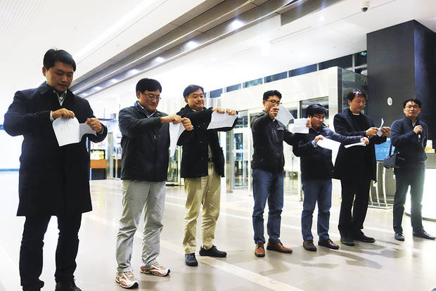 마중 나온 70여명의 동료들 얼굴에도 오랜만에 함박웃음이 피었다. ‘복직’을 축하하듯 내리는 눈발에 밝은 표정으로 서로 포옹하며 기쁨을 나눴다. 6년 동안 많은 것이 변했다. 40대에 쫓겨난 우장균 기자는 50대가 되었고, 정유신 기자는 어느새 세 아이의 아빠가 됐다. 사옥도 남대문이 아닌 상암동으로 이전했다. 어두컴컴한 새벽 출근길, 낯설기도 했지만 곁을 지킨 동료들은 그대로였다.