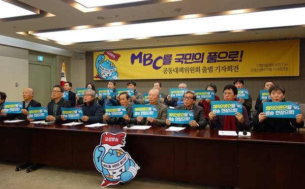 언론계와 노동계, 학계, 예술계, 종교계 등 40여개 언론시민사회단체는 9일 서울 중구 프레스센터 19층 기자회견장에서 ‘MBC를 국민의 품으로! 공동대책위원회' 출범식을 갖고 MBC의 ‘정상화’를 선포했다.