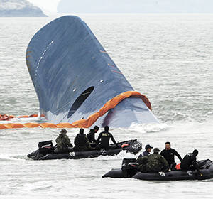 4월16일, 여객선 세월호가 진도 앞바다에서 침몰했다. 언론들은 일제히 ‘세월호 승객 전원구조’를 속보로 냈다. 그러나 이는 오보였다. 이 오보는 아이들을 살릴 수 있는 ‘골든 타임’에 구조 활동을 지연시키게 만들었다는 비판을 받았다. 언론의 잘못은 여기서 그치지 않았다. JTBC는 뉴스특보에서 생존 학생과 인터뷰를 하면서 친구의 사망소식을 전해 여론의 뭇매를 맞았고 MBC는 사고 피해자들이 받을 보험금을 소개하는 보도를 내보내 지탄을 받았다. 이외에도 반인권적 보도는 끊이지 않았다. 이에 한국기자협회를 비롯한 언론 5단체는 지난 9월 재난보도준칙을 마련했다. 이는 언론의 죄책감과 무력감이 녹아 있는 반성문이기도 했다. (사진=뉴시스)