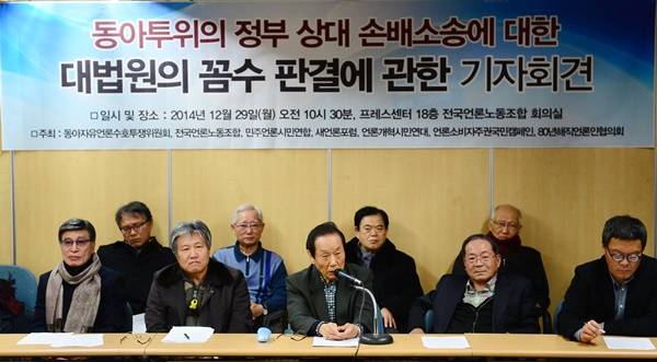 동아투위와 전국언론노조 등은 29일 기자회견을 열고 “대법원이 사실상 원고 전원에 대해 패소 판결을 내렸다”며 “최고법원이 합법을 가장한 꼼수 판결로 진실을 유린했다”고 비판했다.