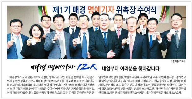 매경은 지난 1일부터 ‘품격 높은 기획기사를 선보인다’는 취지에서 분야별 전문가로 구성된 '제1기 매경 명예기자'를 출범시켰다.