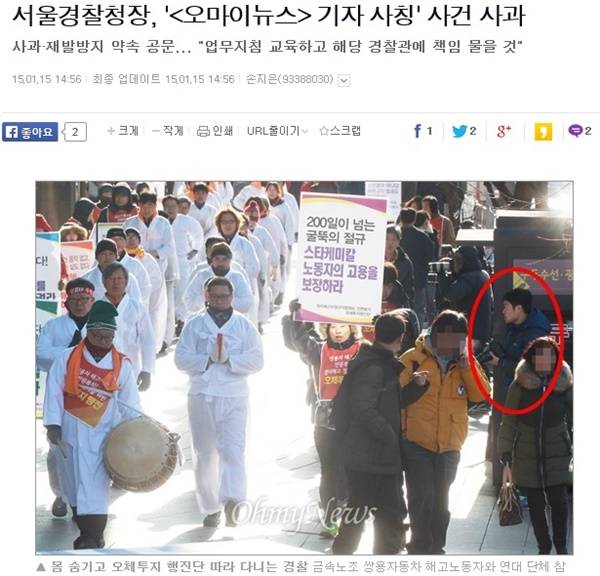 오마이뉴스에 따르면, 구은수 서울지방경찰청장은 15일 인편을 통해 오마이뉴스에 보낸 공문에서 “지난 1월 7일 ‘쌍용차 해고자 오체투지’ 행진 현장에서 구로경찰서 정보보안과 채증 담당 경찰관이 오마이뉴스 기자인 것처럼 행동한 사실은 매우 부적절했다”면서 “오마이뉴스 소속 기자 여러분의 자부심을 훼손하게 된 것에 대해 서울 경찰을 대표해 유감을 표한다”라고 밝혔다.