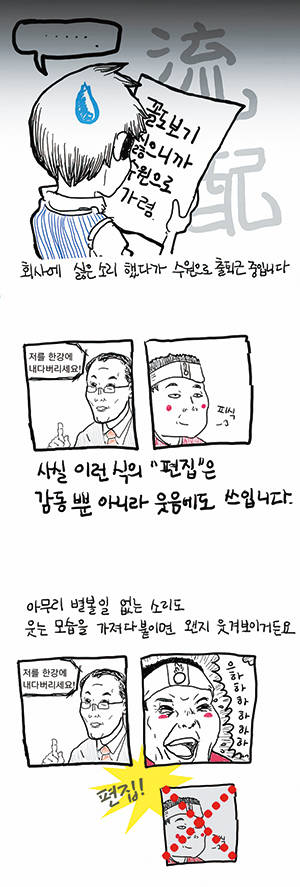 권 PD는 지난해 5월 세월호 참사 관련 자사 보도에 대한 반성 글을 외부 인터넷 게시판에 올렸다가 정직 6개월을 받고 12월 비제작부서인 경인지사로 발령 났다. ‘예능국 이야기’는 이 기간 예능국 사람들과 제작기를 연재하겠다며 그린 만화다. 권 PD는 페이스북을 통해 “고되고 거칠지만, 순진하고 익살스러운 예능국 사람들에 대한 그리움의 표현일 뿐”이라며 “회사를 공격할 의도는 전혀 없었는데 어처구니없이 해고로 이어졌다”고 밝혔다.