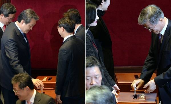 찬성 148표, 반대 128표, 무효 5표. 이완구 국무총리 후보자의 임명동의안이 16일 국회 본회의를 통과했다. 임명안 표결을 두고 여야 대립이 첨예했던 상황에서 새정치민주연합의 본회의 보이콧은 벌어지지 않았다. 새정치민주연합 124명 의원들이 참석한 가운데 일부 여당 의원들의 표가 이탈하며 야당 의원 수보다 더 많은 반대표를 기록했다. 역대 총리 중 두 번째로 낮은 찬성률에 ‘반쪽 총리’라는 지적도 나오지만 향후 책임 총리 역할에 대한 목소리가 높아지고 있다.
