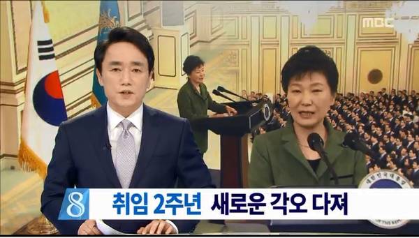 MBC뉴스데스크는 지난달 25일 ‘취임 2주년 새로운 각오 다져’라는 리포트에서 “박 대통령이 청와대 직원 조회에서 ‘새로운 각오로 경제혁신과 통일 기반을 마련해야 한다’며 기강 확립을 강조했다”고 밝혔다. 이어 “청와대는 지난 2년간 경제 재도약의 틀을 만들었고 중국 등 5개국 FTA 체결에 따른 경제 영토 확장 등을 성과로 설명했다”며 “서민 체감 경기, 청년 일자리 문제, 가계부채, 안전관리 사각지대 등은 풀어야 할 과제로 꼽았다”고 밝혔다.