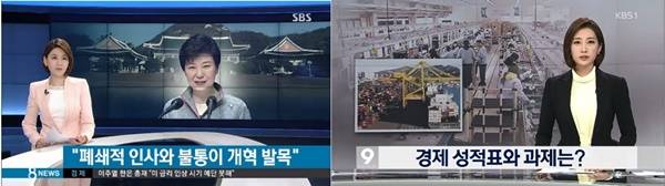 SBS는 박 대통령이 취임 이후 잇단 인사 실패와 국정원 대선개입, 세월호 참사, 비선 개입 의혹 등 각종 논란에 휩싸이며 지지도가 ‘반토막’이 났다는 일련의 내용을 담은 영상을 내보냈다. 또 ‘폐쇄적 인사와 불통이 개혁 발목’, ‘아직도 갈 길 먼 경제활성화’ 리포트로 비판했다.