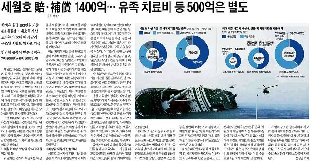 경향은 또 해양수산부가 사고 피해자에 대한 배상·보상 지급기준을 발표하면서 이례적으로 1인당 총 수령액을 제시하며 ‘생색’을 내고 있다는 점도 지적했다. 경향은 “엄청난 보상을 해주는 것처럼 보이지만 뜯어보면 국민세금으로 지원되는 것은 한 푼도 없는 데다 보상액도 여타 교통사고 수준을 넘지 않는다”고 꼬집었다.