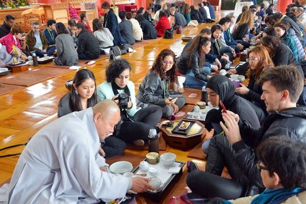 세계 기자들은 지난 15일 대구 팔공산 동화사를 찾아 생소한 한국의 불교문화와 차 문화를 체험했다.