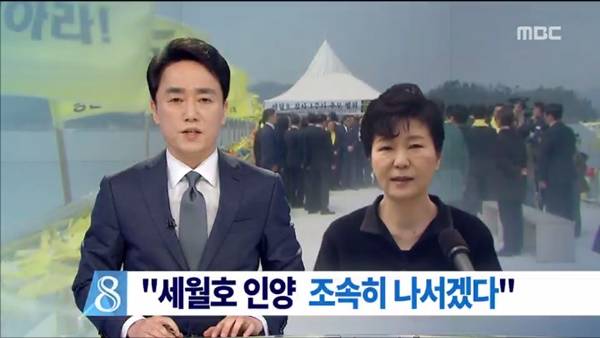 박근혜 대통령이 진도 팽목항을 방문한 16일 MBC 뉴스데스크에는 유가족과 실종자 가족들이 이에 항의하며 분향소를 폐쇄한 내용이 없었다. MBC뉴스데스크는 “박 대통령이 분향소를 찾아가 실종자 9명의 사진 속 얼굴을 일일이 바라봤고, 가족들이 머물고 있는 임시숙소도 살펴봤다”며 “노란 리본이 가득한 방파제에서 박 대통령은 대국민 발표문을 통해 실종자들이 가족의 품으로 돌아올 수 있도록 모든 조치를 다하겠다고 밝혔다”고 보도했다.