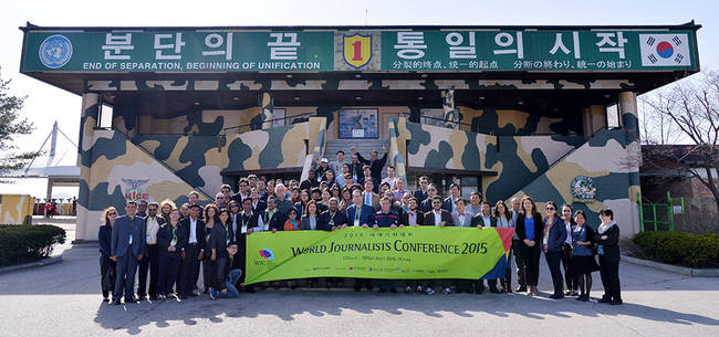 한국기자협회가 주최한 ‘2015 세계기자대회’에 참가한 60개국 100여명의 기자들은 공식일정 마지막 날인 지난 17일, 한반도 분단의 상징인 판문점을 찾아 한반도 평화와 통일을 기원했다.