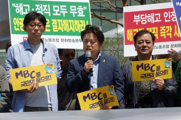 MBC PD인 김환균 전국언론노조 위원장도 “해고로 고통을 겪은 6명, 부당징계로 고통당한 38명 여러분들이 영웅”이라며 “판결에서 승소했기 때문이 아니다. 할 수 있는 것은 누구나 하기 쉽다. 하지만 어려움을 뚫고 당당히 해야 할 일을 했기 때문”이라고 말했다. 김 위원장은 “이번 판결은 정의가 어디에 있는지 확인해줬다. 정의가 승리하고 불의가 심판당한 역사적 판결”이라며 “새로운 정의를 위해 망가진 MBC를 정상화시키고, 왜곡된 구조를 바꿔 나가겠다”고 말했다.
