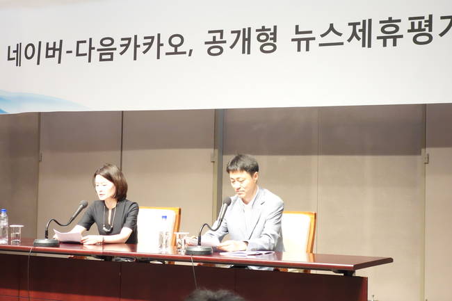 네이버와 다음카카오는 28일 서울 중구 프레스센터에서 ‘양사 공동 뉴스 서비스 설명회’를 열고 언론유관기관에 평가위원회 구성을 위한 준비위원회 설립을 제안했다.