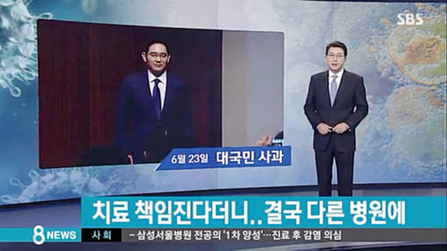 SBS는 지난 3일 ‘뉴스8’ 네 번째 꼭지 ‘치료 책임진다더니…결국 다른 병원에’라는 제목의 리포트를 방영했다. 해당 보도는 이재용 삼성전자 부회장의 대국민 사과 영상과 함께 “‘끝까지 환자를 책임지겠다.’ 이재용 삼성전자 부회장이 지난달 23일 대국민 사과를 하면서 약속한 대목이다. 하지만 열흘 만에 이 약속은 번복됐다. 치료 중인 확진 환자 15명 가운데 12명을 다른 병원으로 옮기기로 했기 때문이다. 별도의 음압 병상이 없는 데다 방호복까지 입은 의료진 감염이 잇따르자 결국 백기를 들고만 셈”이라는 앵커멘트를 내보냈다.